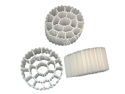 流化床填料又称MBBR填料,应用于好氧生物流化床工艺中,流化床填料(MBBR)采用立体空心结构为好氧生物载体,正常运行过程中填料悬浮在水中。该填料内部生长厌氧菌,产生反硝化作用可以脱氮;外部生长好氧菌去除有机物,整个处理过程中同时存在硝化与反硝化过程。MBBR工艺技术具有容积负荷高的特点,因此MBBR工艺可以有效的减少池容积。